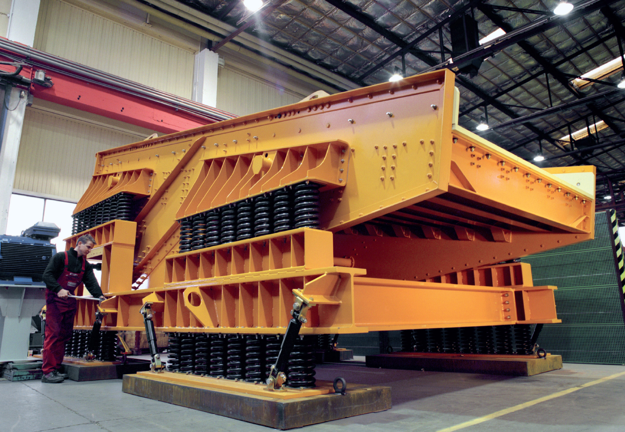 IFE heavy-duty exciter driven vibrating feeder is suited for discharging from mountain silos, crusher feeding, operation in terminals and spreading feeders in front of large screens. It is the perfect solution for very high feeding capacities of bulk solids, rough operating conditions, large dimensions of units and highest availability under tough conditions. In this execution it is exciter driven with an isolating frame to significantly reduce the dynamic loads.